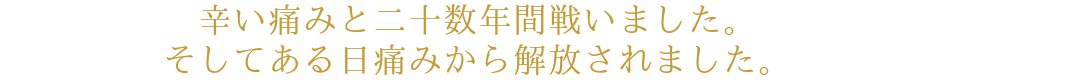 こちらの体験談はご本人様の努力と医療機関等の力を借りた結果も含まれておりますので、必ずしも商品が引き出した結果ではありません。体格や体質が人によって異なるように磁気効果の現れにも個人差があります。あなたが利用した場合にも「この商品の効果が現れる」という保証はありません。