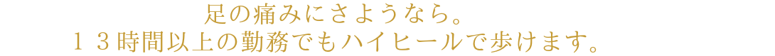 平成17年の8月に仕事を変わりました。変わって2週間目に足の痛みに襲われ全く歩けない状態になってしまいました。もともと若い頃には9センチ前後のハイヒールをずっと履き続けていたために、右足の指のつけね、指5本とも全部に痛みを感じていたのです。すぎさま接骨院に行き診察を受け「仕事に慣れる頃には足も落ち着いてくるやろうし、そんなに心配はいらない」と言われました。