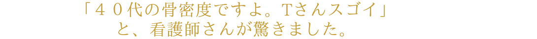 平成14年の10月右足の小指と踵の中間を骨折しました。整形外科の先生によりますと「下駄骨折」というそうです。「年が年だから治るのに3ヵ月はかかるでしょう」と言われました。その上、骨粗しょう症の心配があるからと、カリウム錠をいただきましたが、飲むと胃がムカムカします。それで2日でやめました。骨折の場合、健康磁石を骨折した場面の両側に並べて2本装着し、20分ほどで痛みが軽くなってゆくことに気がつきました。医者からは「3ヵ月はかかる」と言われていましたが、骨折1ヵ月半ほどで、骨が盛り上がり骨折の場所を完全に補い、普通の靴が履けるようになりました。それから1年後の平成15年12月、大学病院で健康診断をうけました。骨密度の検査で「40代の骨密度ですよ。Tさんスゴイ」と、看護師さん達に驚かれました。気がつくと、膝が悪くて駅の階段も手すりにつかまらないと上ることができない時もありましたが、すっかりよくなっていました。健康磁石と出会って早や3年半になりますが、骨だけではなく、気管や内蔵の悪かったところが改善されていることに気づきます。わたしにとって健康磁石命と同じように大切なものです。