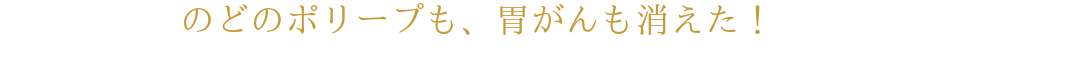 2年くらい前の話ですが、急に胃の調子が悪くなり、2度ばかり血を吐いて病院に担ぎ込まれました。胃潰瘍です。ちょうどそのころ、娘がむち打ち症を治すために、磁気健康器具を着け、あっという間に回復していたので、騙されたつもりで、実際に着けてみることにしました。ところが体重がどんどん減って、あっという間に5キロも痩せてしまい、これはただごとではない、ひょっとしたら胃潰瘍が悪化し、胃がんになってしまったのかもしれないと不安になりました。体調は少しずつよくなっているのに、体重が減るのはなぜだろう?そんな疑問を娘にぶつけてみると、「磁気健康器具のおかげで、血液がさらさらになって、余計な脂が落ちた証拠なのよ」と言われ、少し安心。それからは、真面目に着けはじめるようになりました。着けて2週間くらい経ったとき、病院に行って胃カメラを飲んだら、胃がんどころか、胃潰瘍の影も形もなくなっていました。医者も、「とても77歳の胃じゃないね。きれいで、跡形もないよ」と驚いていました。また、のどにできていたポリープも、この磁気健康器具をのどにずっと着けていたら、半分ぐらいの大きさになっていました。「切らないとダメ、今すぐ入院しなさい」と言っていた医師が「もう少し、様子を見てから考えよう」と言う出す始末です。自分が健康になって嬉しかったので、あちこちでこの話をしています。